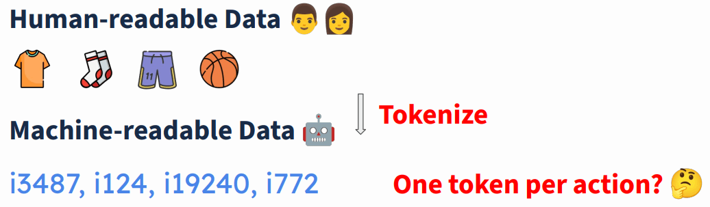 即将人类可读数据(例如用户-商品交互数据)转换为机器可读格式(例如离散 token 序列),