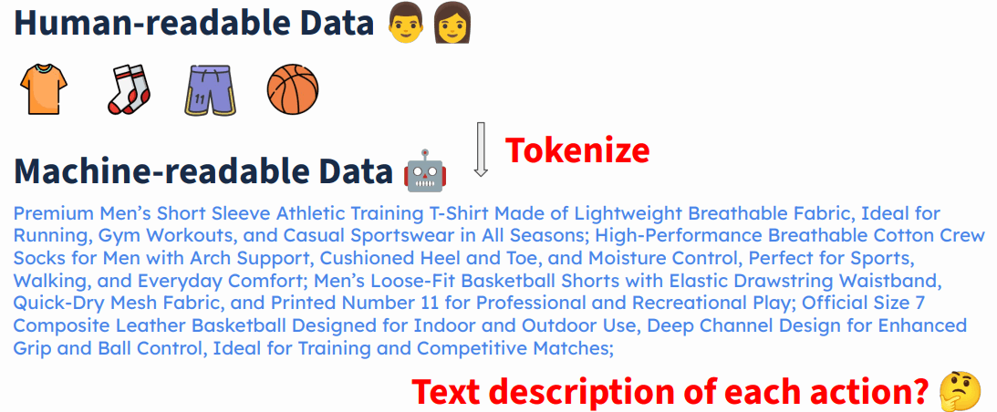 具体来说,就是将 human-readable data (Text, Image, Action, …)