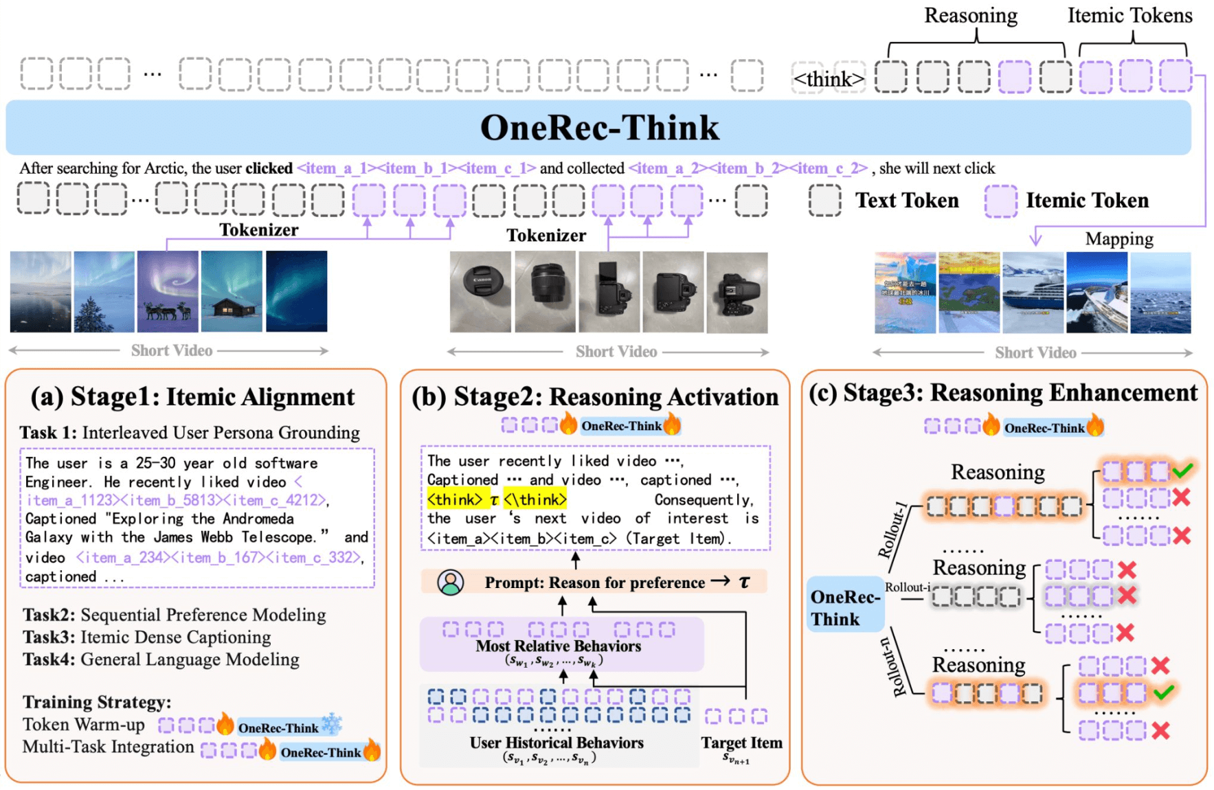 - Reasoning over text tokens - OneRec-Think