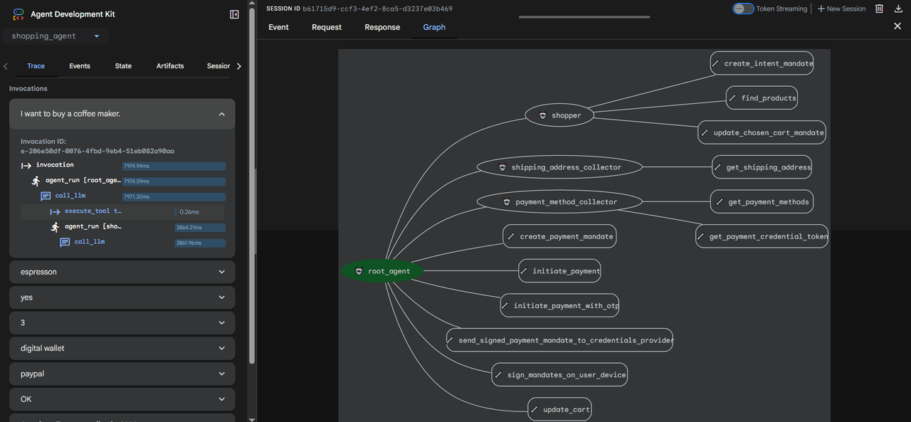 Fig. Shopping agent view of the "Buy a coffee maker" AP2 demo.