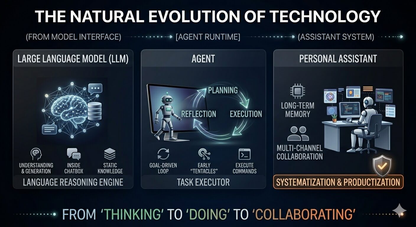 1.1 技术演进:LLM -> Agent -> Assistant